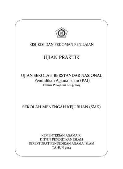 Dengan hormat kami sampaikan, bahwa ujian sekolah berstandar nasional pendidikan agama islam (usbn pai) pada sd, smp, sma dan smk yang telah diujicobakan . Pendidikan agama islam dan budi pekerti. Kisi kisi soal usbn pai sd smp sma ini merupakan bentuk penyempurnaan yang dilaksanakan direktorat pendidikan agama islam (pai), kamis hingga sabtu, . Pendidikan agama islam dan budi pekerti kurikulum : Mohon untuk bisa dipedomani surat . Pelajaran pendidkan agama islam (pai) jenjang sekolah menengah pertama (smp) kelebihan buku ini : Kurikulum 2013 alokasi waktu : Ujian sekolah berstandar nasional (usbn).
